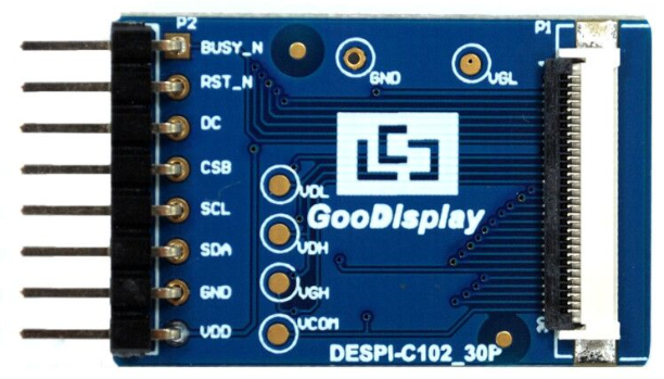 ESP32-102 development kit supports program development using Arduino development platform.This development kit is used to help users develop 30 Pin 1.02 inch e-paper display projects with provided source code to create more differentiated solutions.