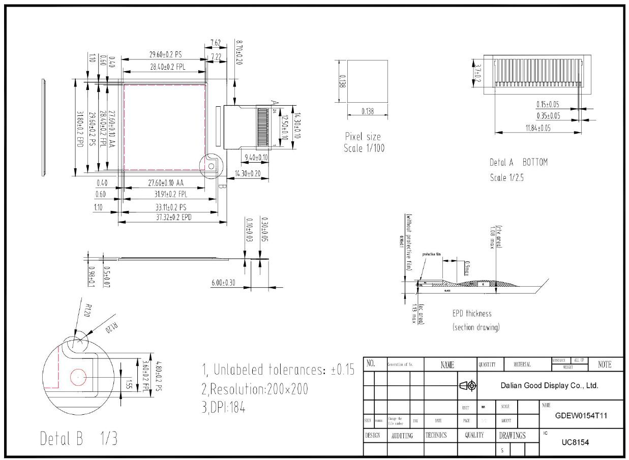 This is a small 1.54 inch cheap e ink display with 200x200 resolution, SPI interface, and the display is capable to display images with black and white content. Your image holds indefinitely without power – put up your image, then shut down the power. Once these e-paper modules are updated they don't require any power and can actually be disconnected entirely and the content will remain on the display indefinitely. This eink display GDEW0154T11 is perfect for low power devices powered by solar or batteries.