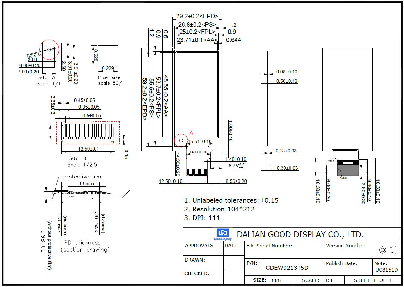 ● GDEW0213T5D Specification
