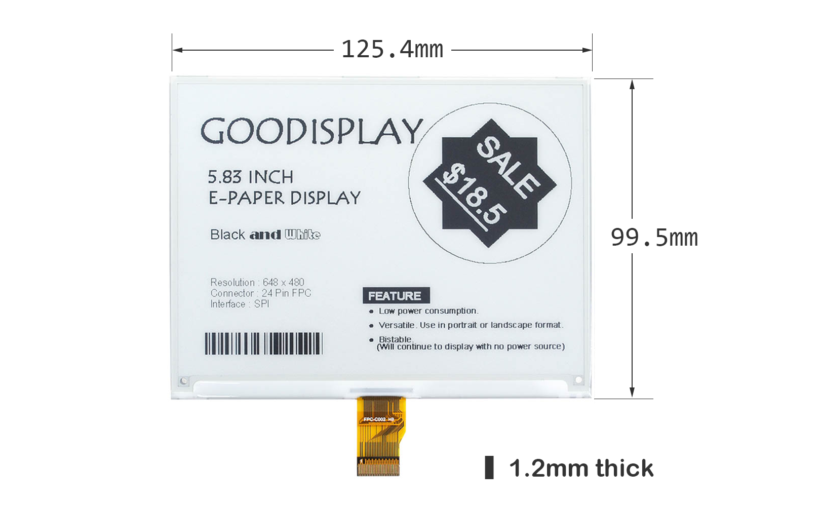 | SIZE | 5.83 inch | MAX GRAYSCALE | 4 | ||
