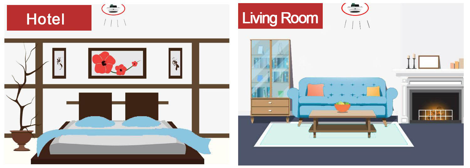 1. Select the installation location according to the detection range of the product and the room layout to ensure that the room can be effectively covered;